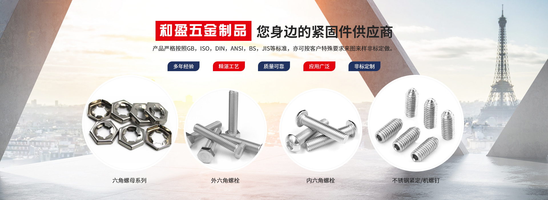 興化市和盈五金制品有限公司創(chuàng)建于2010年,坐落在全國不銹鋼名鎮———江蘇戴南。本公司集當地不銹鋼優(yōu)勢和全國銷售網點,以不銹鋼緊固件產品為主體的企業。我們將始終如一的堅持以客戶為中心,堅持以品質取勝的發(fā)展戰(zhàn)略,依靠科學技術不斷創(chuàng)新。秉承這種精神,我們一起和諧合作,共贏未來。產品嚴格按照GB,ISO,DIN,ANSI,BS,JIS等標準,亦可按客戶特殊要求來圖來樣非標定做。產品廣泛應用......